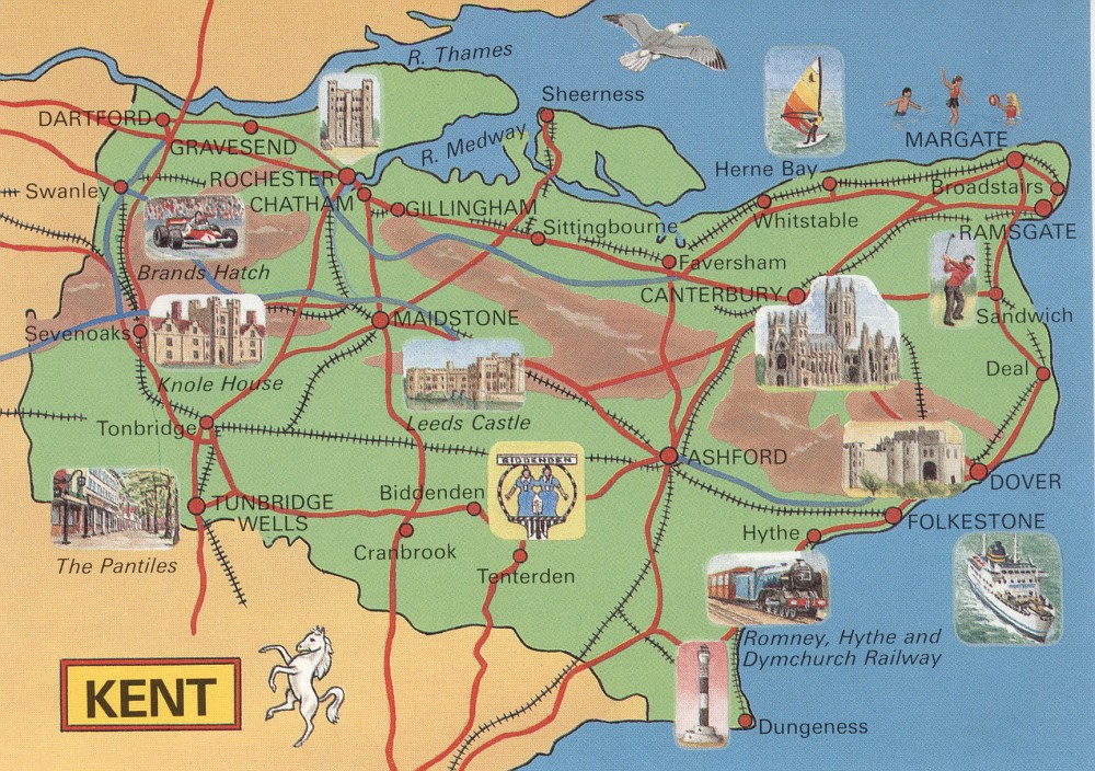Kent, a maritime county in South-east England, is bounded on the North, East, South-east and South by significant waterways and seas. Saxon leaders Hengist and Horsa landed at Pegwell Bay in the 5th century.