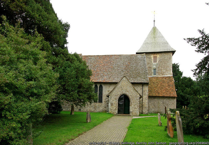 SellindgeSellindge is ecclesiastically in the diocese of Canterbury, in the archdeaconry of Canterbury and in the deanery of North and South Lympne. The church is named for St. Mary the Virgin with registers commencing 1559. Sellindge, a village and a parish in Elham district, Kent. The village stands adjacent to the Southeastern railway, 3/4 of a mile east of Smeeth rail station, and 5 northwest by west of Hythe; is a scattered place; and has a post office with telegraph office and savings bank, under Hythe. The parish includes a detached portion, isolated by Dymchurch; and comprises 2,055 acres. Real property in 1860, £3,843. Population in 1861, 580. Houses, 125. The property is divided among a few. The living is a vicarage in the diocese of Canterbury. Value, £177, with a habitable glebe house. Patron, the Lord Chancellor. The church is old but good, and has a low Norman tower. There are a national school, and charities £73. Source: John Marius Wilson, comp. The Imperial Gazatteer of England and Wales. (London, England: A. Fullerton & Co., 1870). Sellindge Bibliography-- various. 'Archaeologia Cantiana'. Publisher: Kent, England: Kent Archaeological Society, various dates. [Note: The following volumes can be found on archive.org: 1, 2, 3, 4, 5, 6, 7, 8, 9, 10 (1876), 11, 12, 13 (1880), 14, 15, 16, 17, 18, 19, 20, 21, 22, 23, 24, 25, 26, 27, 32, 34, 35, vol. 1907 supplement.]