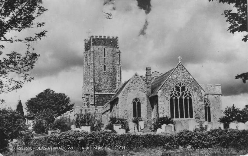 Thanet, St. PeterSt. Nicholas at Wade, a village and a parish in Thanet district, Kent. The village stands on comparatively high ground, overlooking the marshes of the Stour, 3 miles northeast of Grove Ferry rail station, and 6-1/2 miles west-south-west of Margate; and has a post office under Margate. The parish extends to the coast; measures about 4 miles from east to west, and 2-1/2 miles from north to south; and comprises 3,440 acres of land, and 220 of water. Real property in 1860, £8,222. Population in 1861, 590. Houses, 129. The property is divided among a few. The living is a vicarage in the diocese of Canterbury. Value £176 with a habitable glebe house. Patron, Archbishop of Canterbury. The church was originally a chapel of ease to Reculver; was transferred to the monks of Christchurch, Canterbury, and was rebuilt by them; is partly Norman, partly early English, partly decorated English, with interesting features; comprises nave, aisles, and chancel, with a porch and a lofty tower; and was restored in 1863. The civil parish of the same name at the 1921 census was coextensive with the ecclesiastical parish.3 ChurchesThere is also a Wesleyan chapel.1 SchoolsThere is a national school.1 CharitiesCharities to the value of £94.1 1John Marius Wilson, comp. The Imperial Gazatteer of England and Wales. (London, England: A. Fullerton & Co., 1870). 2Edward Hasted, ed. and comp. The town and parish of St. Nicholas at Wade: Town and manors, The History and Topographical Survey of the County of Kent: Volume 4 (1798), pp. 260-307. 3William Page, 1861-1934, ed. The Victoria County History of Kent, vol. 3, p. 360.(London, England: The St. Catherine Press, Stamford Street, Waterloo, S.E., 1932). Thanet, St. Peter's Bibliography-- various. 'Archaeologia Cantiana'. Publisher: Kent, England: Kent Archaeological Society, various dates. [Note: The following volumes can be found on archive.org: 1, 2, 3, 4, 5, 6, 7, 8, 9, 10 (1876), 11, 12, 13 (1880), 14, 15, 16, 17, 18, 19, 20, 21, 22, 23, 24, 25, 26, 27, 32, 34, 35, vol. 1907 supplement.]