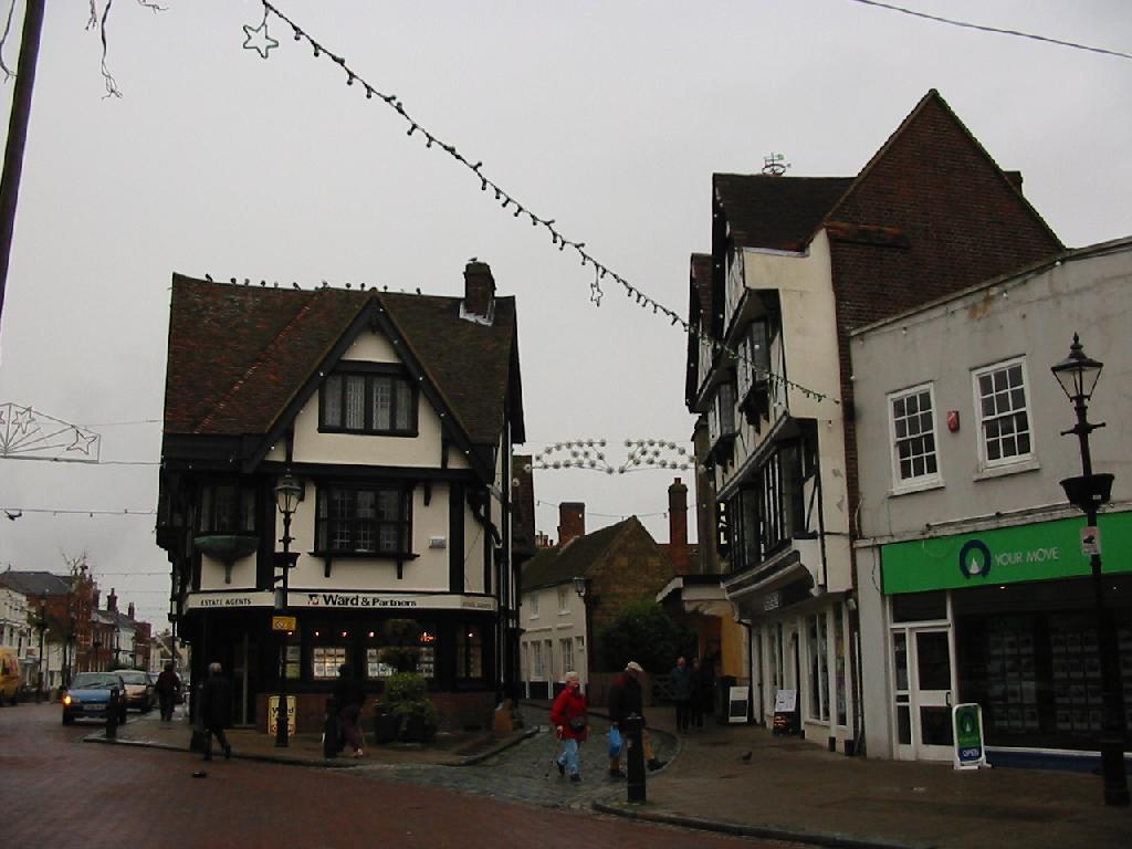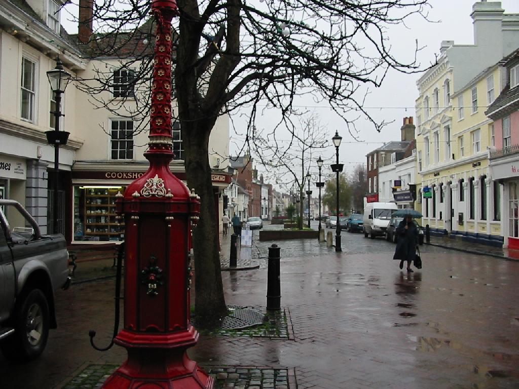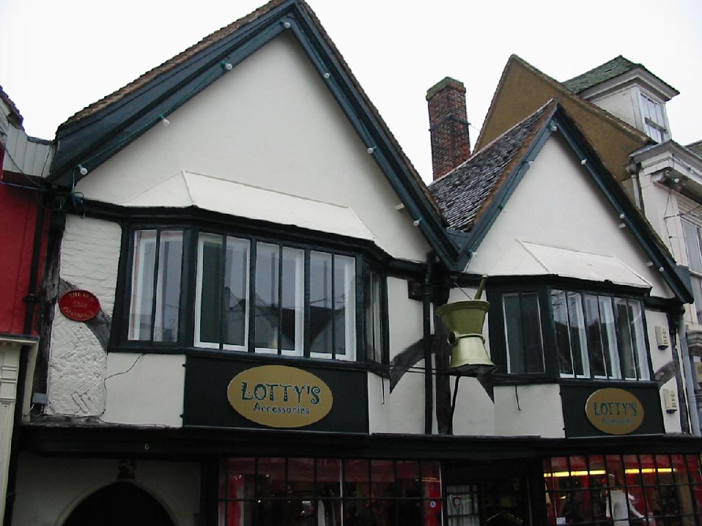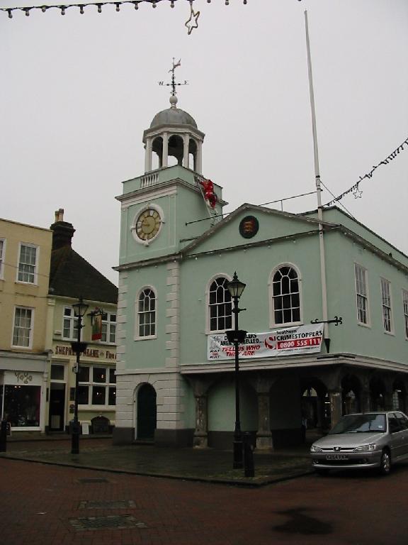 The Guildhall (left) stands at the town's centre. The original open arcade on the ground floor was ideal for markets and dates from the 16th century. The upper stories were rebuilt in 1819. | ![]() ![]() |